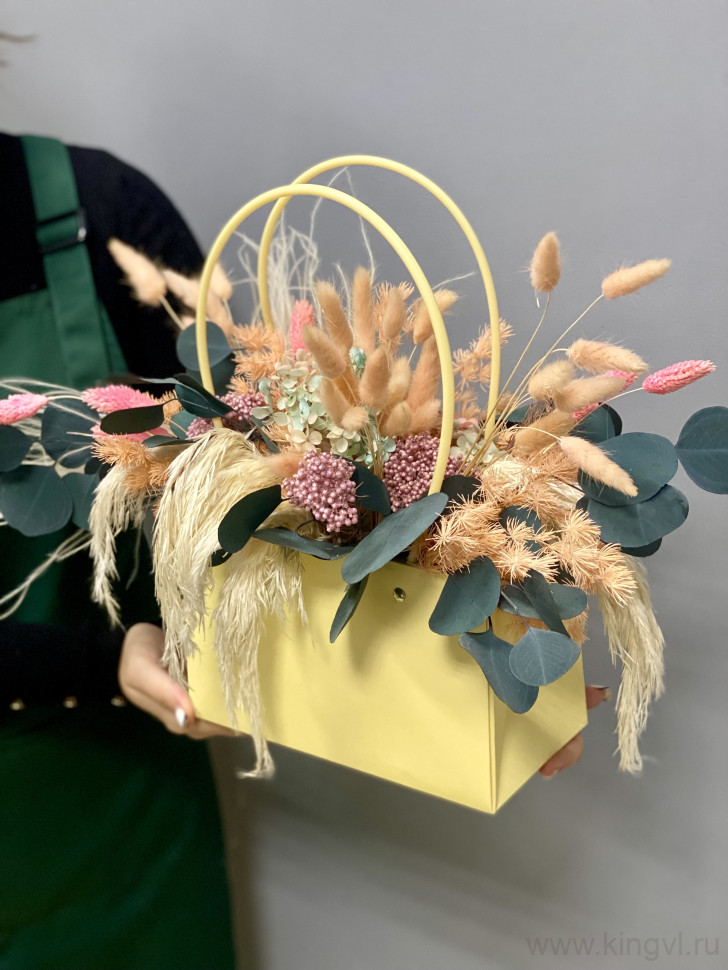 Композиция " Сухоцветная симфония" в сумочке украсит своей вечной красотой абсолютно любое место и интерьер. Радуйте любимых чаще!